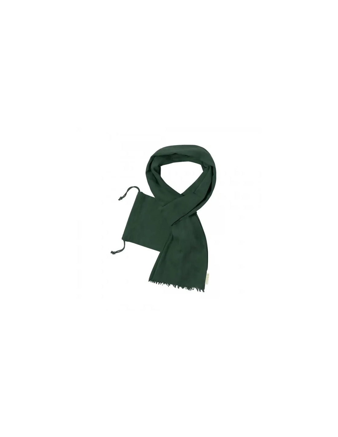Foulard fabricado en algodón orgánico de 70 g/m², con dimensiones de 180 cm de longitud y 50 cm de alto. Se presenta con una funda a juego confeccionada en algodón orgánico y equipada con cierre de cordón. El producto incorpora una etiqueta que certifica su composición de algodón 100% orgánico y está disponible en una extensa paleta de colores.