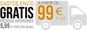 Los gastos de envío en España (peninsular) son GRATIS para pedidos superiores a 99 euros + IVA. Para pedidos inferiores se cobrarán 5,95 € por bulto. Para envíos fuera de España, a las Islas Baleares, Canarias, Ceuta y Melilla, cotizaremos los portes en función del destino, peso y volumen de la mercancía.